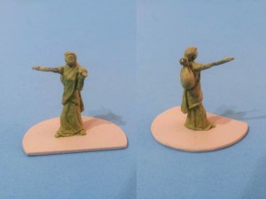 A combination of green stuff and milliput – better texture to work with and reasonable drying time.